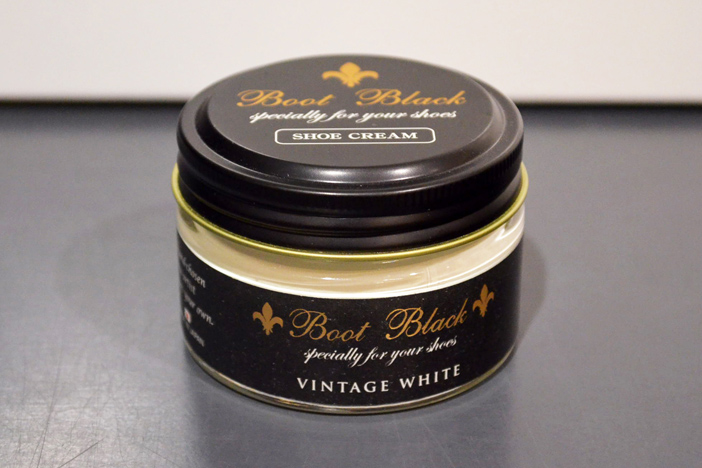 硬めの豚毛ブラシでしっかりとブラッシングします。余分なクリームを取り除き、靴全体に馴染ませてくれます。塗りムラがないように均一に伸びるよう心掛けてください。この時、以前に使用したブラシを使用すると色が付いてしまう場合があるので、白専用のブラシまたは新品のものを使用してください。