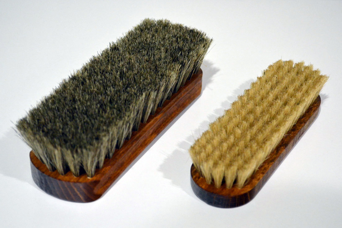 写真左:ブラシ(馬毛)/ 写真右:ブラシ(豚毛)