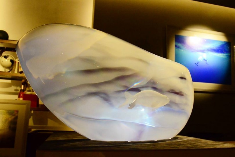 彼の作り出す“海棲哺乳類や水”をテーマにした、独自で編み出した技法を使う透明で神々しさを持つ作品をご紹介いたします。