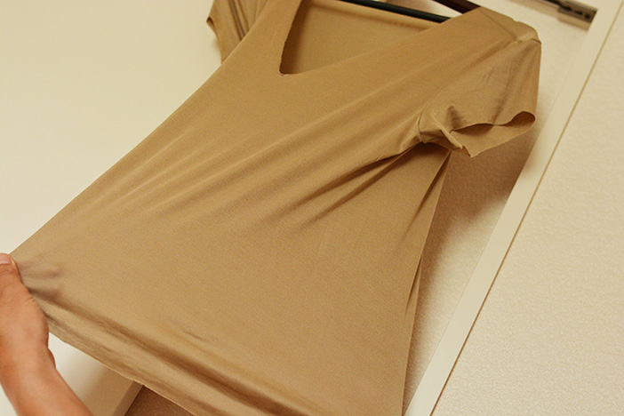 普通の肌着だと、折り目があってワイシャツなどに干渉することもあるのですが、カットオフだと肌と一体化になったような着心地感を味わえます。