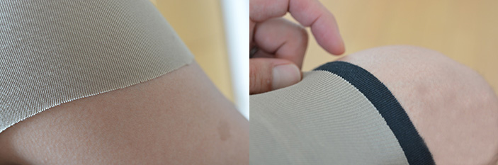 シャツの袖も、パンツでも、肌着の折り返しの部分が干渉して太もも部分がスラックスやジーンズの中で捲り上がることがあります。