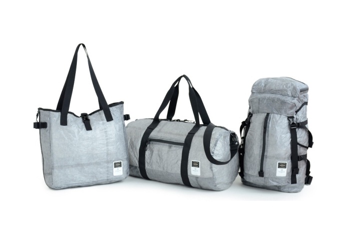 藤原ヒロシ氏のデザインプロジェクトfragment designとのアイテムは、軽量かつ強靭な糸をラミネート加工した特殊生地、キューベン・ファイバーを使用。半透明の見た目に反し高い耐久性を誇る、優れたマテリアルが魅力。