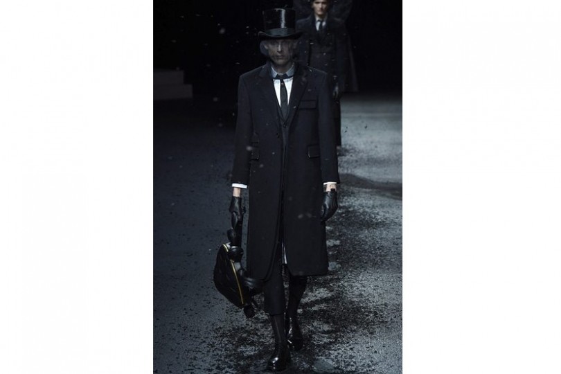 <トム ブラウン ニューヨーク>2015年秋冬コレクションは、「生と死」を主題としたパリでのプレゼンテーションが話題となり、その演出もさることながら、黒と白を基調としながら複雑な織りのジャガード、ブークレー調のウール、レースやシルクといったテキスタイルにこだわり抜いたコレクションです。