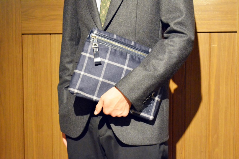 定番の革のクラッチがON styleなら、このクラッチバックはOFF styleにぴったりだね!」