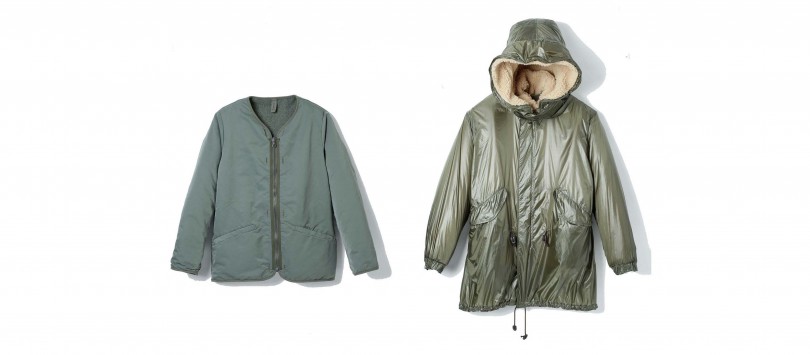 左/ <nonnative(ノンネイティブ)>スタンドカラーの中綿入りモッズコートじは、ブランドのアイコンでもあるシグネチャーデザイン。収納式のフードを出せば、ベーシックなモッズコートとしても楽しめます。防寒性の高い中綿仕様に加え、ウエストと裾のドローストリングにより外気もシャットアウト。タウンユースだけでなく、アウトドアシーンでも存分に活躍してくれそう。ブルゾン 79,920円(税込)
