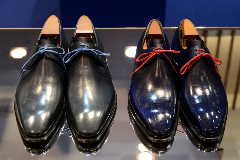 ハンドによる芸術的な彩色と、流麗を極めた木型で名高いパリのシューメーカー、コルテ。こちらがつくったネイビーカラーのプレーントウは、夜の帳や深海を彷彿させる、深いカラーリングに心打たれます。ネイビースーツやジーンズに合わせたとき、これほどエレガントに見える靴はありません。