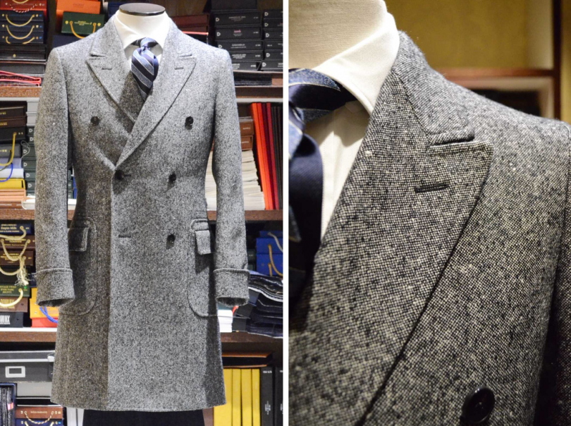 今回は尾州地区の“葛利毛織”という機屋さんが織った生地で仕立てたスーツとコートをご紹介します。