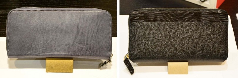 右:ツヤの美しいゴートレザーを使用した<L'arcobaleno/ラルコバレーノ>からは、一部にエキゾチックレザーを使ったラグジュアリーな別注がお目見え。