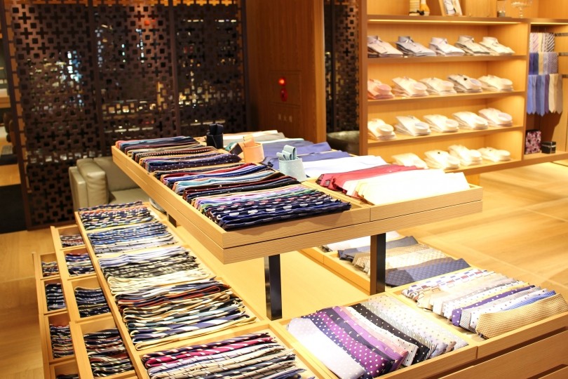「会社の昼休みや夜の会食前にネクタイを購入されるビジネスマンも多いですね。人気なのはオーセンティックなネイビーですが、お薦めすると明るめのカラーのネクタイも喜ばれます。特に<LUIGI BORRELLI/ルイジ ボレッリ>のネクタイは人気があります」と担当者。