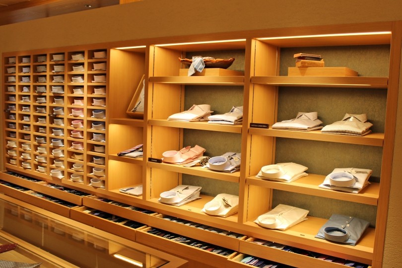 シャツコーナーを丹念に見られているお客さまが思わず「オッ!」と二度見するのが、ショウケースの中にある<ANNA MATUOZZO/アンナ・マトッツォ>のシャツ。イセタンサローネ メンズでは既製シャツ(84,000円)を取り扱っています。また、伊勢丹新宿店メンズ館1階では「パターンオーダー」も常時受け付けていますので、ぜひご注目ください。