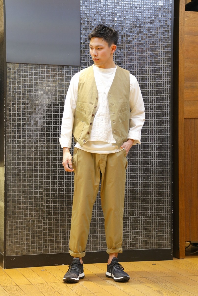 シャツ<BIG YANK>24,840円、セーター<Fileuse d'Arvor>11,880円、ベスト<KAPTAIN SUNSHINE>25,920円、パンツ<KAPTAIN SUNSHINE>32,400円(以上メンズ館7階=オーセンティックカジュアル)、スニーカー<adidas>"PureBOOST ZG"15,120円(アディダス ジャパン)田子 祐輝(メンズ館7階=オーセンティックカジュアル)