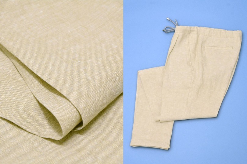 オススメのイージーパンツ「7B」は、股上浅めのスリムなフィッティングでドローコード仕様。センタークリース入りでエレガントなスタイリングを楽しめるワンプリーツで、盛夏まで穿けるリネン素材は、清涼感ある着こなしにぴったりです。