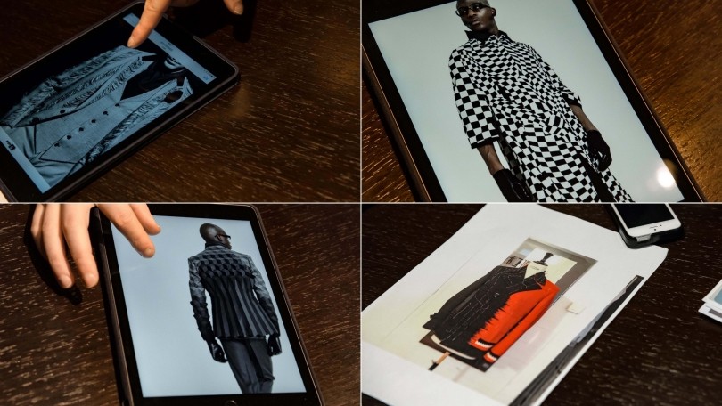 緯糸を抜いて、よれたタータンチェック、キューブをプリントとパッチワーク、立体で表現したコート、異なるアウターをノコギリの刃のような刺繍で縫い合わせた一着…。素人目にみても従来の服の概念をかるく超えていた。これまでにつくり溜めた作品のゆたかな発想力はもちろん、具現化する技量も圧巻だった。