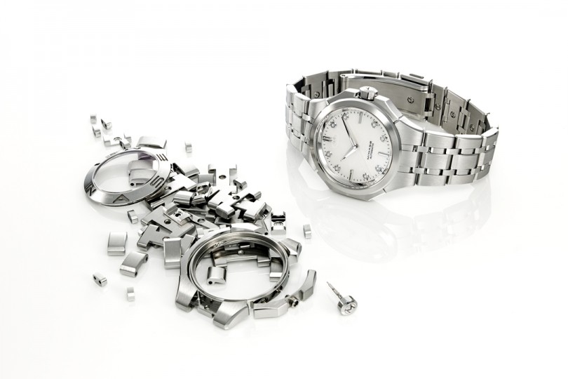 「DIVIDO」のブレスレットは特許構造「MORE構造(Minase Original Rebuilding Equation)」と呼ばれ、日本の組木細工にインスパイアを受け、すべての外装部品を何度でも分解組立出来る設計で、傷んだ部品だけを交換できるなど、ほぼ永続的に時計をお使いいただけます。