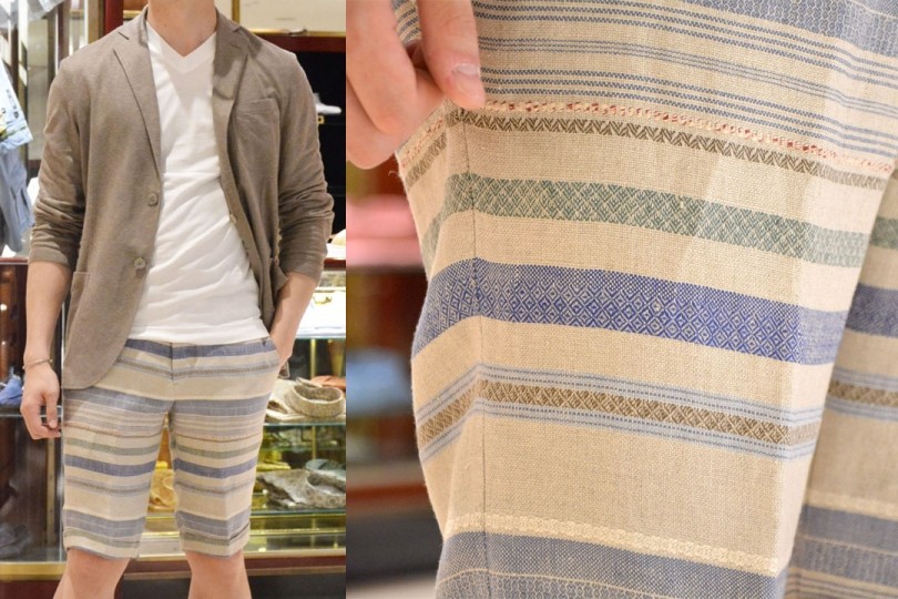 人気ブランド<PT01/ピーティーゼロウーノ>の新ラインとして登場した<PT BERMUDA/ピーティー・バミューダ>で見つけたのは、エスニックな雰囲気が初夏のリゾートにぴったりのマルチボーダーショートパンツ。Tシャツを合わせてよりカジュアルに、サマーニットやジャケットを合わせて大人のカジュアルにと、幅広く着こなしが楽しめます。色違いでボーダー部分が赤のモノもあり。