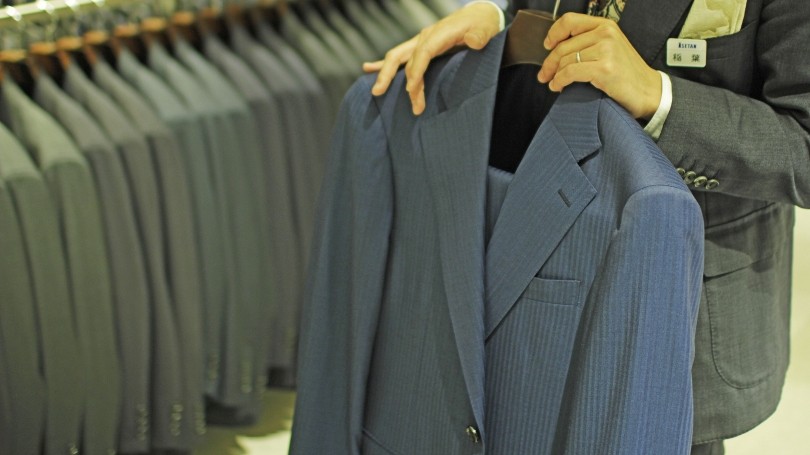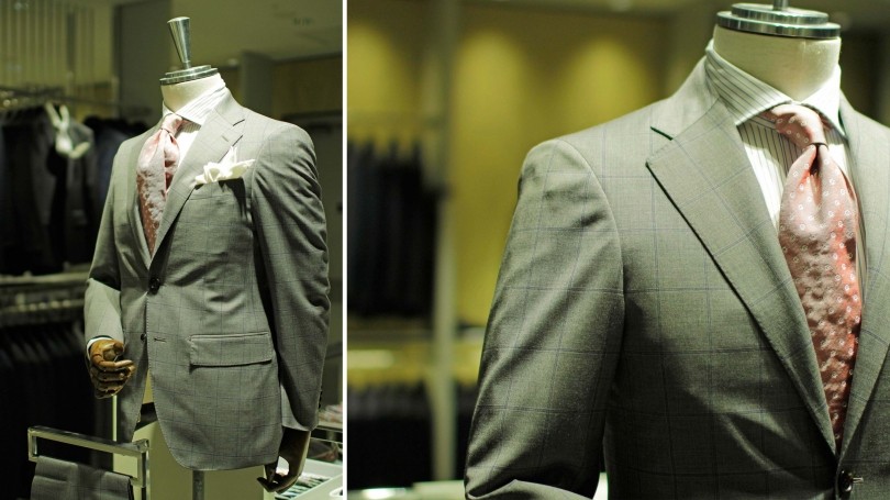 「ジャパンメイドのスーツを語るうえで欠かせないのが、この<ダーバン オンブラーレ>。日本人の体形を熟知したパターンと高い技術力、そして、"日本の男をかっこよくしたい"というコンセプトのもと、お客さまの価値の変化と共に成長しながら、変わらないオリジンやフィロソフィーで進化を続ける同ブランドは今でも多くの男性を魅了しています。」とメンズ館5階=ビジネスクロージング担当の稲葉智大。