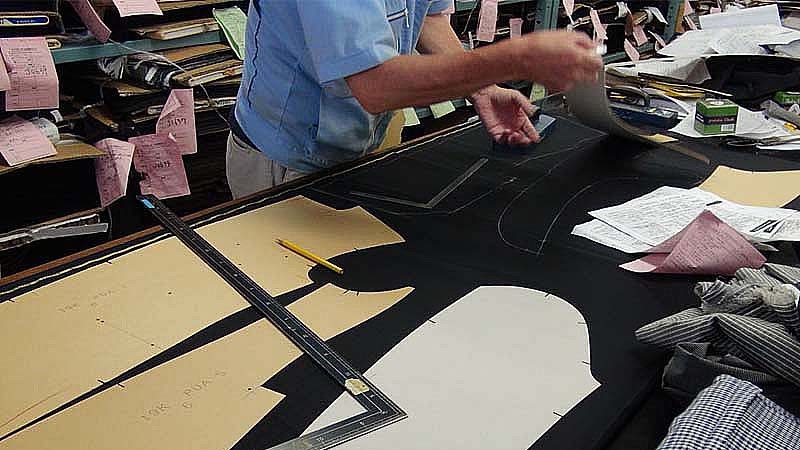 さらにロンナー島原のこだわりはテーラリング技術のみならず"エイジング"された生地にもあります。これは予め専門機関で検査された生地を入荷してすぐには裁断せず、熟練の職人が風合いと特性を見極めます。そして自社の基準に満たないものはあらためて最適な状態に整え、はじめて縫製の工程に回すというもの。裁断前にエイジングさせ、さらに縫製や中間プレスの間にも要所で寝かせ、生地を落ちつかせることで仕立て後の型崩れを防ぐことに繋げていくのです。