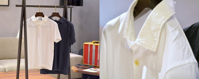 夏を爽やかに着こなすには、やっぱり“ポロシャツ”ということで、ポロシャツをオーガニックコットンで作り上げてもらいました。肌触りも良く、カジュアルに見えるポロシャツも上質なコットンなので少しシックな印象に。