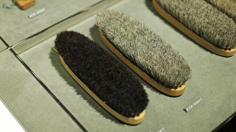 そう言いながら、ブラシ作りの手を止めない石川氏は、「よく、ブラシは優しくソフトに手首を返しながら……と説明するブラシ屋がいますが、聞こえはいいけど、それではホコリは落ちません。繊維の目の中のホコリまでかき出すから、光沢が蘇るし、色合いも深くなってくる。うちのブラシに柄(え)がないのも力をしっかり込めたいからです」