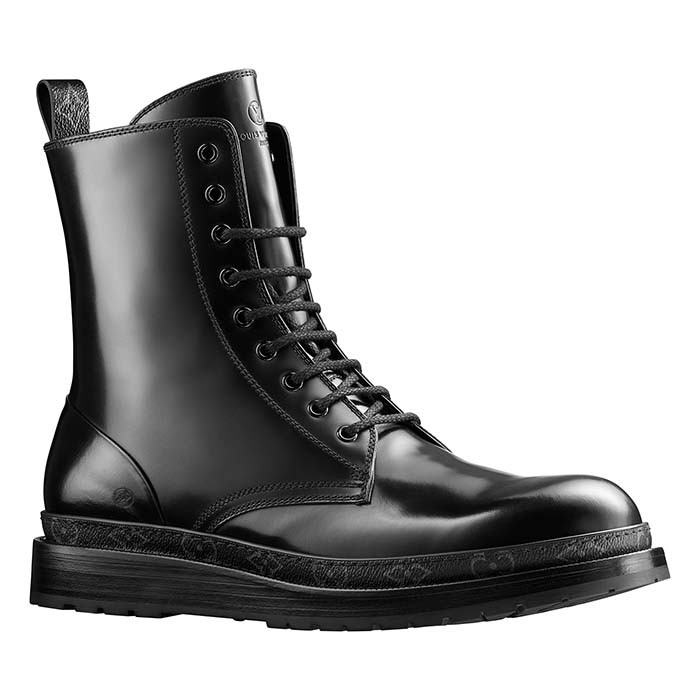 戸賀 このスニーカーは、甲部分がブラックのモノグラム・キャンバスで、後ろがカウハイドを使用しています。デニムとのコーディネートにもフィットしますね。櫻井君が履いている「ブラックアイス・ライン アンクルブーツ」はコバの部分が黒のモノグラム・キャンバスになっていて、これもクールなデザインです。