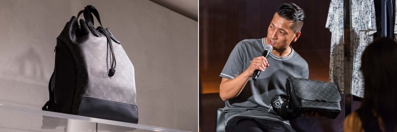 櫻井 戸賀さんは「モノグラム・エクリプス」の中ではどれがお気に入りですか? 戸賀 「バックパック エクスプローラー」ですね。上部のヒモは、レディースのバッグからインスピレーションを受けているそうですが、ヒモを緩めてハンドルを持つとトートバッグとしても使えます。ポップアップストアでも一番人気だったとのウワサで、荷物の量で持ち方が使い分けられるのに個人的に注目しています。