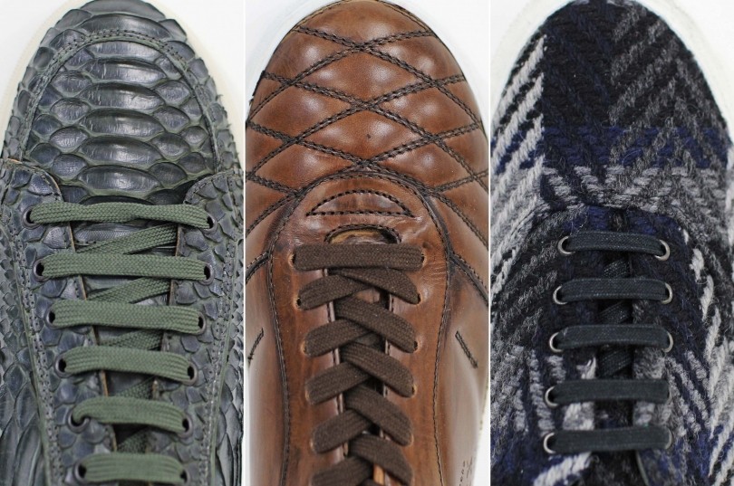 パリ発のレザーブランド<アイセア>が一気に注目を集めたのは、某有名ブランドが愛用している牛革(トリヨンクレマンス)の供給と、バスク出身のデザイナー兼オーナーによる流麗なデザイン。コストパフォーマンスの高い物作りも魅力で、今回の「ピッティ・イマージネ・ウオモ アット イセタンメンズ」では、丈夫でソフトなシュリンクレザーを使用したスリッポンと、素材感溢れるパイソンレザーを使用したスニーカーをご用意。モノトーンの着こなしにも似合うラグジュアリーな雰囲気を演出するスニーカーが登場します。