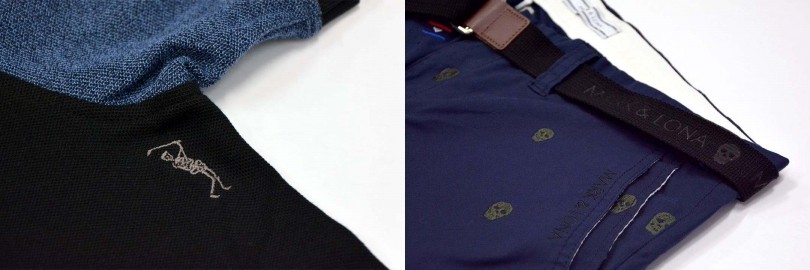 さらに、しなやかなタッチのモールスキンストレッチ素材にスカルを総柄刺繍で表現したボトムスは、すっきりとしたテーパードシルエット。フロントポケットはティやマーカー等が収納なWポケット仕様、ブランドロゴがエンボス加工されたベルトがセットになっています。