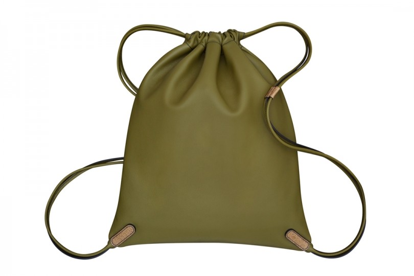 T バックパック(L) 99,360円 さらに、T バックパックが登場。ナップサック型の形状で懐かしさを感じさせながら、高度な漉きや縫製の技術を駆使して作り込んだ大人のバックパック。