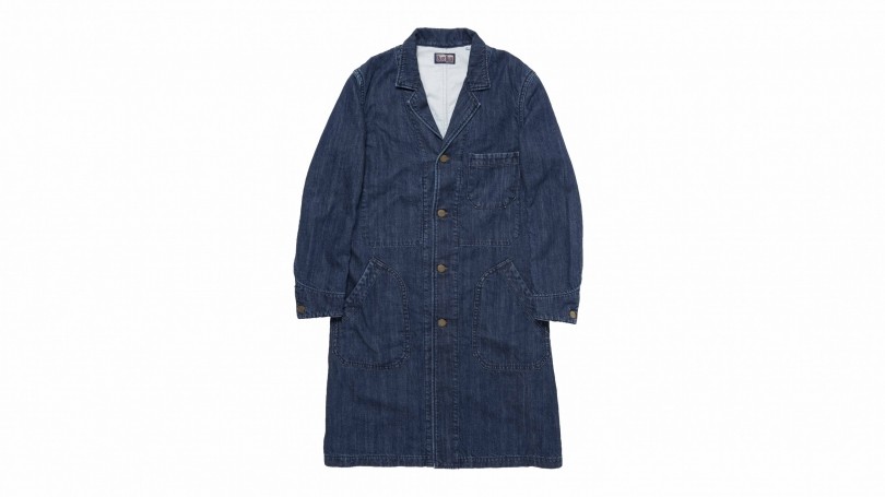 デニムのショップコートも、<ブルーブルー>が手掛けると一味違う。ウォッシュ加工による色落ちも、縮みのアタリも、不自然さがまったくなくかなり完成度も高い。コットンの裏地付きで染料の色移りを防いでいるため、中に着る服を選びやすいのも良い。