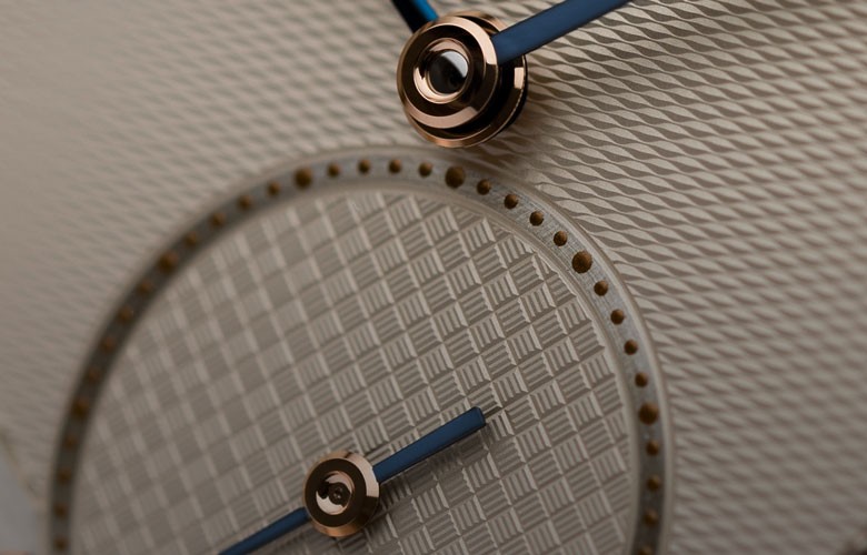 シルバー製の文字盤は非常に緻密なギヨシェ彫りを複数使い分けており、約700もの工程を経て作られます。これらは、他のメーカーに比べても非常に高いレベルで仕上げられているのが一目瞭然です。