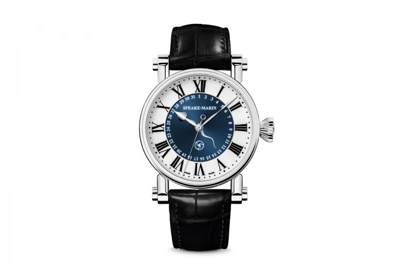 スピークマリンの代表的なモデルの一つである「サーペントカレンダー」、独特の針の形状は19世紀に造られた懐中時計の針をモチーフに彼がデザインしました。