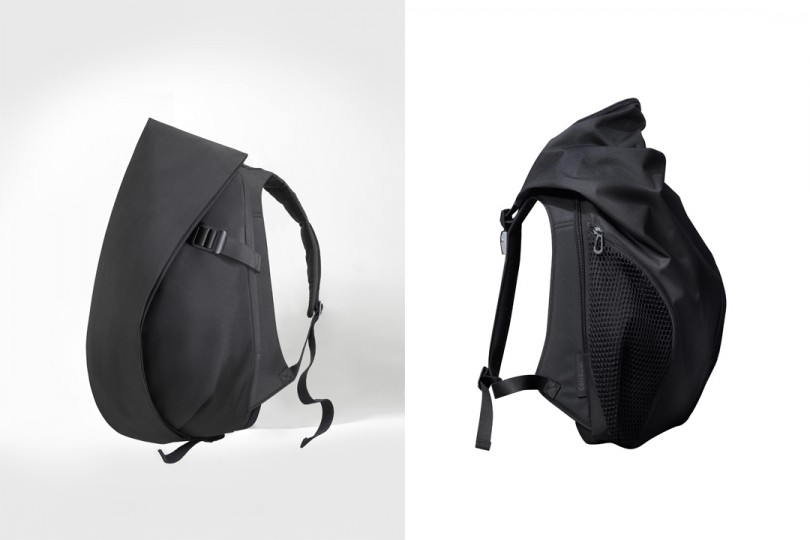 実用的なバックパック「チグリス」は、19世紀のアルプスの登山ガイドからインスピレーションを受けたモダニストバージョン。トップには収納可能なフードを備えています。