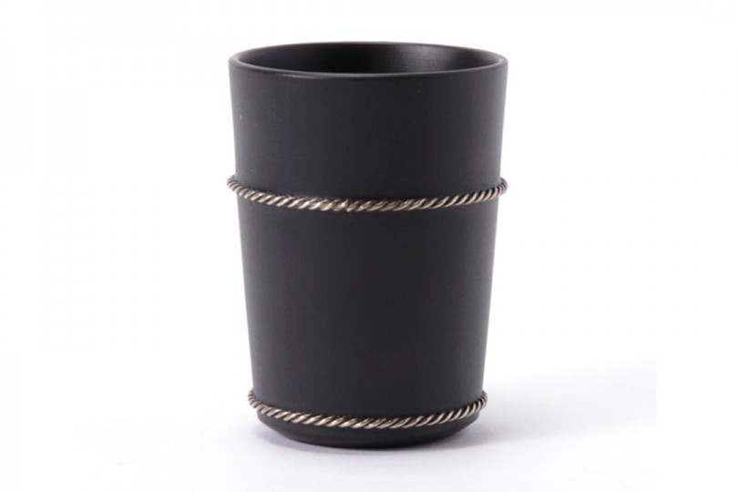 桶をモチーフにし、ねじりを加えた細いタガを真鍮で表現。マットな質感に仕上げられたダークグレーの漆塗りと、木の温もりや優しさが調和した一品です。非常に軽い仕上がりのため使いやすく、ゆったりとくつろぎ、日本酒を楽しむ時間を演出します。