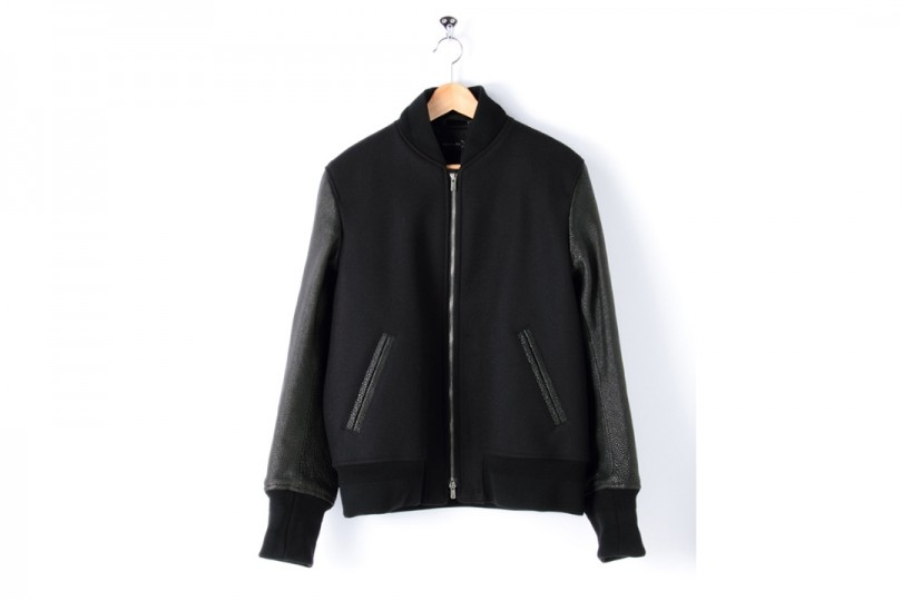 カシミアのように繊維の細いウィントンメルトン素材を身頃に配したスタジアムジャンパー。光沢、柔軟性、弾力性に富み、糸の太さに工夫をかさねて毛羽立ちを抑えているため、表面の美しさが保たれます。袖には甲冑に用いられたという漆塗り技術を施したレザーを使用。落ち着いた色使いと上質な素材が、重厚感のある仕上がりを生み出しています。