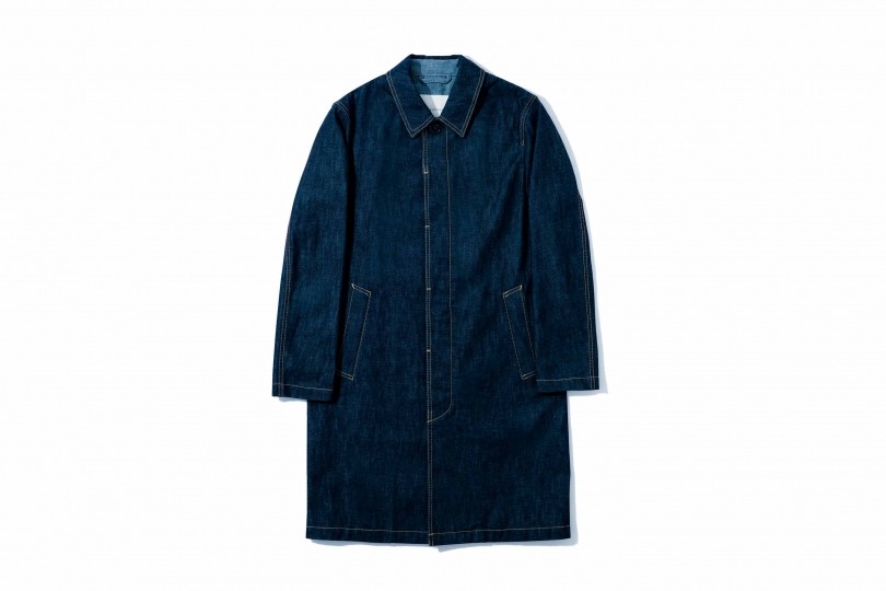ノンウォッシュのデニムに効かせたオレンジのステッチやシャープな衿が、そこはかとなくモードな雰囲気を演出。デニムのナチュラルな風合いをいかした一着だ。