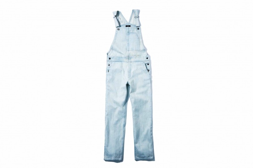 14オンスのノンストレッチデニムでつくったサロペット。重たくなりがちなアイテムも、ブリーチアウトした素材を用いることで、春らしい軽やかな印象に仕上がった。