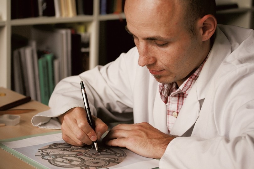 現在ドレスデンの工房はクドケ本人と組み立てを担当する女性時計師の2人で行っており、全ての時計に彼の手が加わっています。スケルトン加工や彫金など手作業で行う割合が多い為、1つの時計を作り上げるために2~3ヵ月かかるモデルもあり、年間生産量は約100本と非常に限られた生産量にとどまっています。