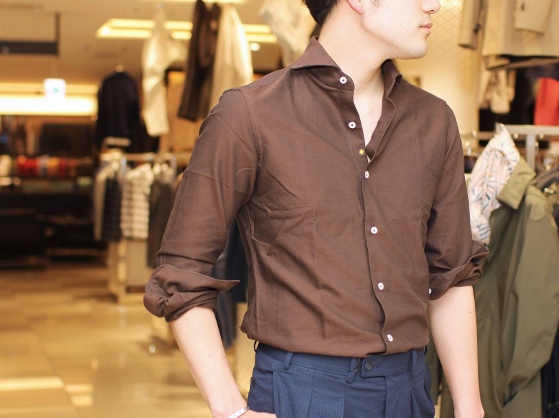 担当バイヤーの山浦勇樹は、「ヴィンチェンツォ氏の生地選びや加工のセンスは抜群で、たとえば、色のコントラストの強いブリティッシュテイストのチェックにブリーチをかけてフェード感を出したり、紅茶で染めてくすんだ感じのヴィンテージ調を表現するなど、さまざまな新しいトライアルにも挑んでいます。現在のイタリアは“シャツの戦国時代”のような状況ですが、数多あるメーカーの中でも、オリジナリティのある生地や柔らかい襟、動きに合わせた袖付けなど、ファンを惹きつける要素をたくさん持っているのがこの<ジャンネット>です」と推奨する。
