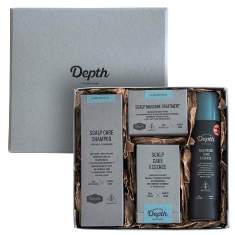 頭皮のスキンケアであるスカルプケアを徹底的に研究し、フェイスケア同様に頭皮にも「洗浄・保湿」を行うという新発想で、男性向けスカルプケアを展開する<デプス>。肌のプロフェッショナルである<アルビオン>のスキンケア技術と、成分を頭皮にしっかり届けるナノキャリアの技術、さらに髪のプロである美容師のヘアケア技術。この3者の技術がコラボレーションしたスカルプケアは、機能性だけでなく使用感や香り、デザイン性までこだわった”見ただけで使いたくなる、使うと使い続けたくなるような”仕上がりに。