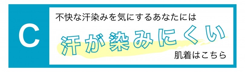 C. 不快な汗染みを気にするあなたには、汗が染みにくい肌着
