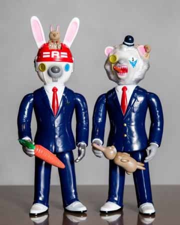 カジュアルアートの世界を様々なフォームに表現するデザイン事務所<Swimmy Desingn Lab>のアートディレクターを務める吉永卓氏がデザインを手がけたウサギロボットとライオンポップ。ただ可愛いだけじゃない毒気のあるデザインが印象的なソフビです。