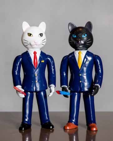次にご紹介するのは<奇譚クラブ>がデザインした「ネコリーマン」。キタンクラブは2006年に設立されたカプセルトイメーカー。販売累計1,200万個を超えた人気のコップのフチ子をはじめ、土下座ストラップやスマホのおふとんなど独創的でちょっぴりおかしな商品を多数生み出しているヒットメーカーです。8体の中で一番シンプルなデザインのネコリーマン。手に持ったネコのエサなどシンプルな中にある遊び心がキタンクラブらしさを残しているようなソフビになります。