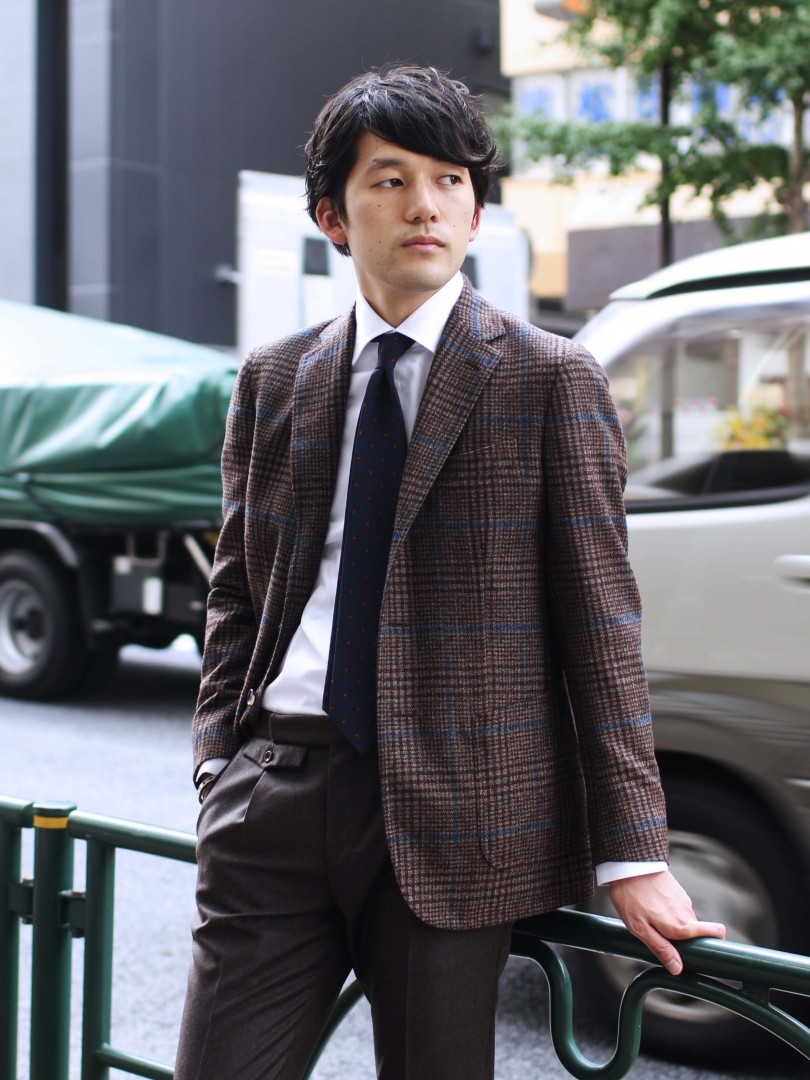 また、今回のスペシャルファブリックとして、英国「ラッシャーミルズ」にフォーカス。仕立て映えのする打ち込みのしっかりした生地とナポリの柔らかな仕立てによるマリアージュをお愉しみいただきたい。