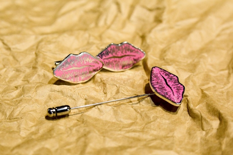 リップマークのラペルピンは、鮮やかなピンクやレッドのリップマークがポップな印象ながらも、上品さを残したアイテム。発売当初から人気のアイテムで、今回はラメが入った新作がお目見えしました。また、近年<チカシ>が手掛けるジュエリーの中でも、ゴールド素材を使用したアイテムへの注目が高まっていることから、今回はゴールドのタイバーをご用意。シンプルながらも計算されたデザインで、胸元に存在感をプラスするアイテムに仕上げられています。ネクタイやシャツの柄のとも調和し、ゴールドの温かみもあって合わせやすさが魅力です。
