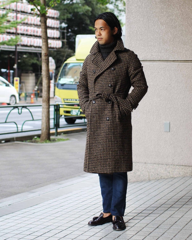 また、ジャケット、スーツと同じようにイタリアのドレスシーンのトップランナーなのが<TAGLIATORE/タリアトーレ>。お薦めの一着は、ブランドのイチ推しでもあるダブルブレストのモデル「RIPA(リパ)」。クラシックなトレンドを上手に解釈しながら、英国調を香らせる素材と作りが見事。「コートは旬なアイテム」というのを着て感じさせてくれるベルテッドコートだ。