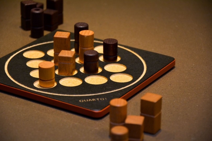 次にご紹介するのがこちら、QUARTO(クアルト)です。フランスでとても人気が高く、過去40年余りで、世界で最も多くの国際賞を受賞したゲームです。しかし、ただのゲームではなく、客観的に見るスキルをつけ脳内で瞬時の整理・整頓を行う、頭脳派ゲームです。4目並べに『置くコマは常に相手が選ぶ!』というルールを開発したことで面白さの新しい構造が生まれたと言われている新感覚のゲームです。