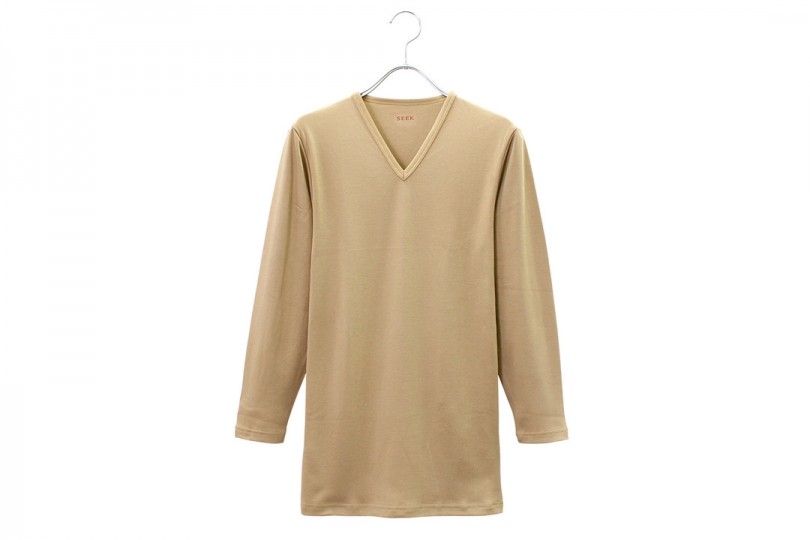 こちらは綿素材で2重構造になった一枚。肌に触れる内側を起毛させることで、着心地はソフトに、身体から出た湿度を熱に変え温かさにも優れています。NEXT>発熱×化学繊維のインナー
