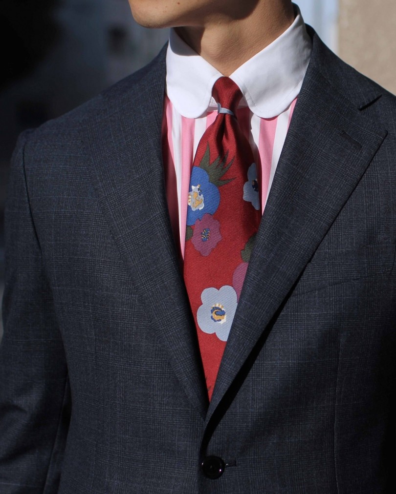 また、スーツのインナーを飾るシャツも大きく変化。<バグッタ>が展開するシャツは80年代を彷彿とさせる華やかさとモダンさをアピール。英国的なクレリックはロンドンストライプがマッチして、コンテンポラリーな印象を与えたほか、マルチカラーストライプを提案。幅広ストライプがクラシック=温故知新を感じさせる。