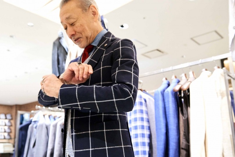 シューズデザイナー 坪内 浩さんと歩く「春のメンズ館」 #3|5階=ビジネスクロージングで気に入って試着した3着(1/2)