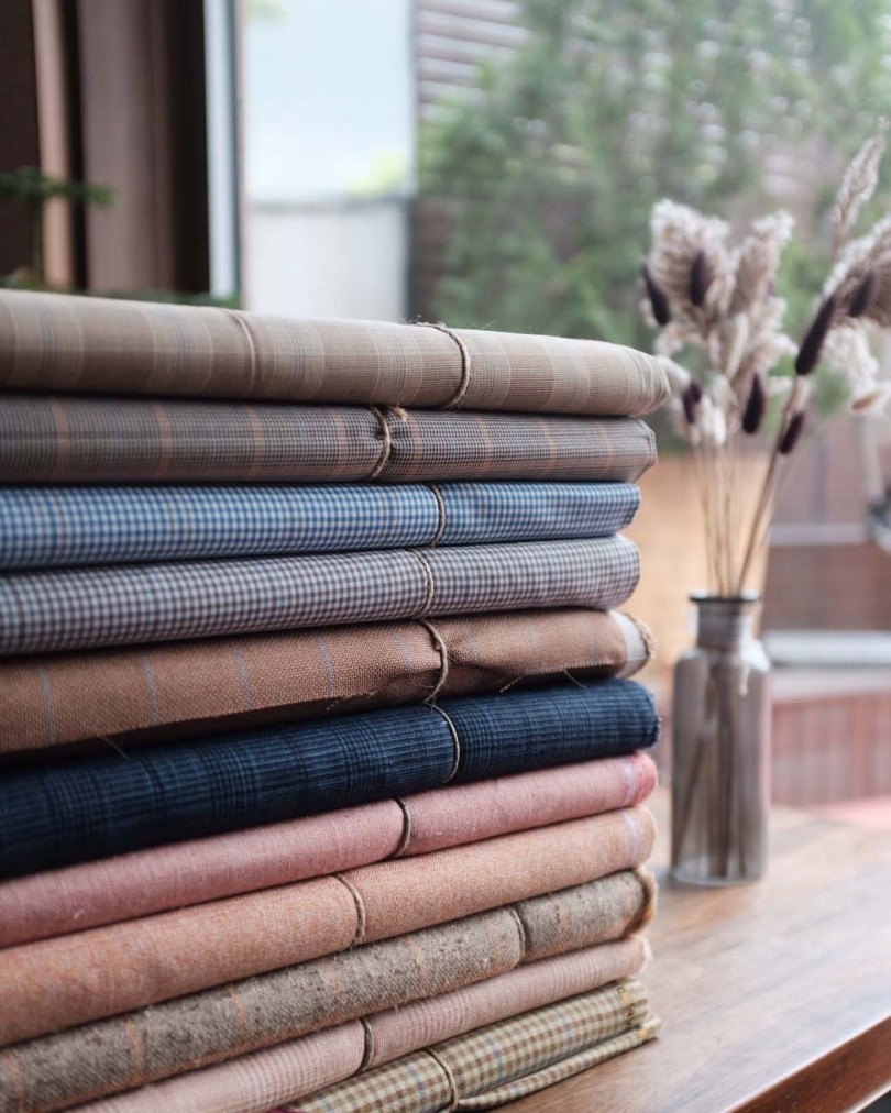 また、今回のトランクショーでは、パク氏が所有する希少なアーカイブ生地も特別に用意し、<B&Tailor>が通常取り扱うメイド・トゥ・メジャーに加え、フルハンドのビスポークオーダーも可能。こちらは仮縫いと中縫いが一回ずつあり、お渡しは約1年後。一人ひとりのお客さまの体型に合わせたパターン(型紙)を一から製図し、裁断から縫製までのすべてを職人の手で行われるビスポークは、テーラリング哲学と研究のすべてが詰め込まれた唯一無二の一着となる。